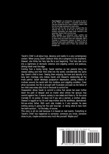 'Sarah's Child' is all about love, decency and reality in a very contemporary context. When young Sarah Clarkson finds she is pregnant to her boyfriend, Stewart, she thinks her fairy tale life is just beginning. That fairy tale turns into a nightmare of domestic violence and crippling control and jealousy, driving Sarah over the edge. Sarah develops postpartum depression, joining millions of mothers around the world with this insidious and crippling condition. Even when recovered, her life is wrought with frustration and pain as the father of her child uses every dirty trick in the book to control her. Desperation drives Sarah to commit a crime that sends her even further down the path of despair and no matter what crimes her spouse may commit against her, it seems society is one sided and there is, for the once mentally ill, no justice.