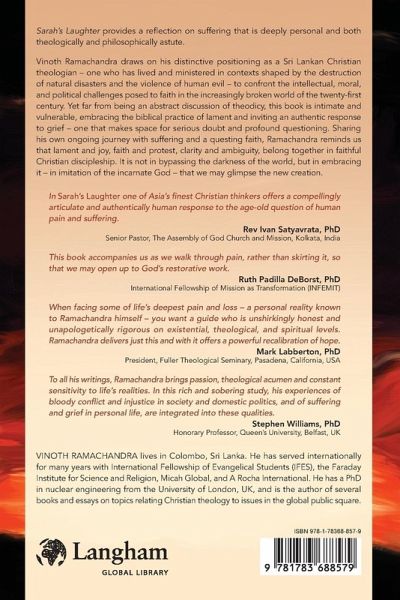 Sarah's Laughter provides a reflection on suffering that is deeply personal and both theologically and philosophically astute. Vinoth Ramachandra draws on his distinctive positioning as a Sri Lankan Christian theologian - one who has lived and ministered in contexts shaped by the destruction of natural disasters and the violence of human evil - to confront the intellectual, moral, and political challenges posed to faith in the increasingly broken world of the twenty-first century. Yet far from being an abstract discussion of theodicy, this book is intimate and vulnerable, embracing the biblical practice of lament and inviting an authentic response to grief - one that makes space for serious doubt and profound questioning. Sharing his own ongoing journey with suffering and a questing faith, Ramachandra reminds us that lament and joy, faith and protest, clarity and ambiguity, belong together in faithful Christian discipleship. It is not in bypassing the darkness of the world, but in embracing it - in imitation of the incarnate God - that we may glimpse the new creation.