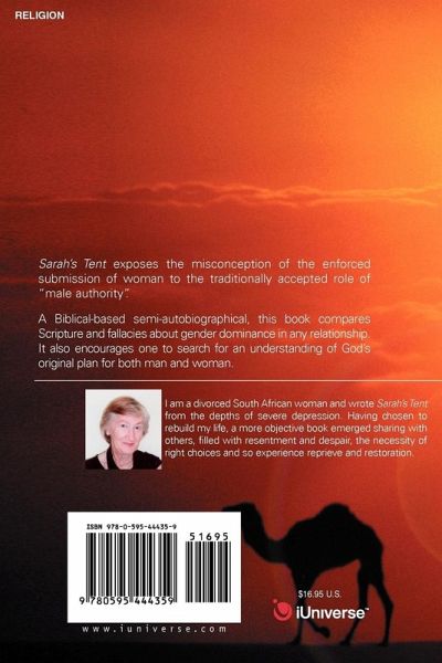 Sarah's Tent exposes the misconception of the enforced submission of woman to the traditionally accepted role of "male authority". A Biblical-based semi-autobiographical, this book explores and exposes the misconceptions and fallacies about the role of male dominance in any relationship. It encourages one to examine and explore Scripture to understand God's original plan for man and woman.