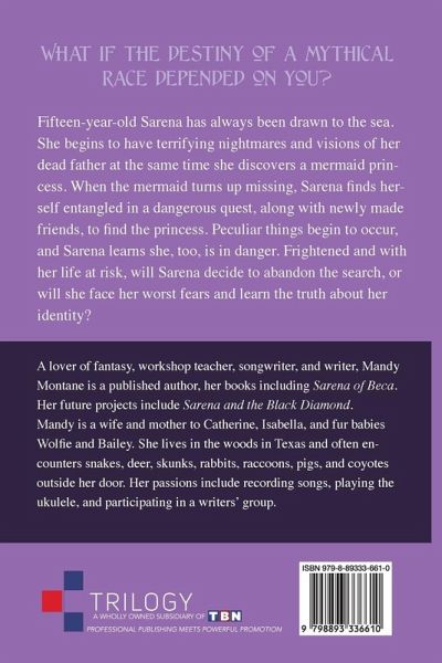 What if the destiny of a mythical race depended on you? Fifteen-year-old Sarena has always been drawn to the sea. She begins to have terrifying nightmares and visions of her dead father at the same time she discovers a mermaid princess. When the mermaid turns up missing, Sarena finds herself entangled in a dangerous quest, along with newly made friends, to find the princess. Peculiar things begin to occur, and Sarena learns she, too, is in danger. Frightened and with her life at risk, will Sarena decide to abandon the search, or will she face her worst fears and learn the truth about her identity?