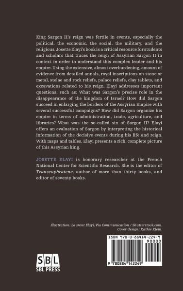 Elayi's book is the only existing biography of Sargon II, the famous Assyrian king, who was a megalomaniac and a warlord. Among the most important questions addressed in the book are the following: what was his precise role in the disappearance of the kingdom of Israel? How did he succeed in enlarging the borders of the Assyrian Empire by several successful campaigns? How did he organize his empire (administration, trade, agriculture, libraries)? What was the so-called 'sin" of Sargon?