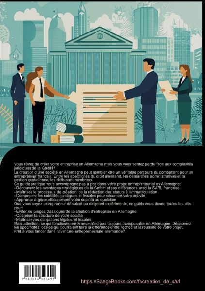 Ce guide pratique offre aux entrepreneurs français une analyse détaillée de la société à responsabilité limitée allemande (GmbH) et de son processus de création.Structuré en six parties principales, l'ouvrage aborde :- Les fondements juridiques de la GmbH allemande, incluant le droit des sociétés, les règles de responsabilité et la structure des organes sociaux- Le processus de création étape par étape, des mesures préparatoires aux formalités administratives- Les aspects internationaux de la création d'une GmbH, avec une comparaison approfondie entre la GmbH et d'autres formes juridiques étrangères- La gestion financière, comprenant l'administration du capital social, la comptabilité et l'optimisation fiscale- Le management stratégique, couvrant les responsabilités de la direction et les relations entre associés- L'organisation quotidienne, détaillant les obligations administratives et la gestion du personnelChaque chapitre propose des informations pratiques, des schémas explicatifs et des conseils concrets pour la création en Allemagne. Les entrepreneurs trouveront des réponses précises sur :- Les avantages spécifiques de la GmbH allemande- Les démarches administratives nécessaires- La gestion transfrontalière- Les obligations légales et fiscales- L'organisation opérationnelleCe guide accompagne les entrepreneurs français dans leur projet d'implantation en Allemagne, en leur fournissant les outils nécessaires pour créer et gérer efficacement leur société.Ce livre a été créé en utilisant des technologies innovantes telles que l'Intelligence Artificielle ainsi que des outils spécialement développés - par exemple, pour la recherche d'idées, la recherche d'informations, l'écriture, la relecture, l'assurance qualité et la conception d'illustrations décoratives.Ainsi, nous souhaitons vous offrir une expérience de lecture particulièrement cohérente, moderne et d'une qualité encore supérieure.
