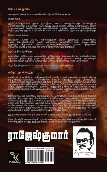Sarppa Viyugam Two tracks Story A young couple Hari and Jaya travel to Ooty along with eight year old Varun, who is younger brother of Jaya. Once they reach Ooty, Varun acts weird and abnormal. Initially Hari ignores those as he assumes as chlid acts but it end up as a monstrous issue. Durga, daughter of a wealthy man in Ooty and Vallabh, son of a Business man in Chennai fall in love with each other. When they decide to marry, their family astrologer warns them that their marriage would have disastrous after-effects in their family. Both the families were dejected hearing that. This makes Durga take a very important decision and that leads to some unfortunate painful events. Edho Nadakkiradhu Psychology professor Amirthavarshini is invited as a guest for a talk show in Jupiter TV channel. She was shocked to know when she was informed at the last moment that the participants would be once mentally challenged people who were return from rehabilitation centre. In spite of that, she decides to face it with endurance. Unfortunately, the show starts with a disastrous incident and stuns everyone. In the other series, a group of Village people, meet Hariharasudhan, a wealthy business man in the town, for seeking his help to demolish a pretty old temple and build a new one. Hariharasudhan was astonished to know the reason for demolishing the old temple. He agrees to help but with some preconditions that shocks them. Since then, Hariharasudhan's wife feels that its a beginning of a problem that is going to hit hard. The author had penned both the stories with a mix of Psychology and Mystery with ting of science.