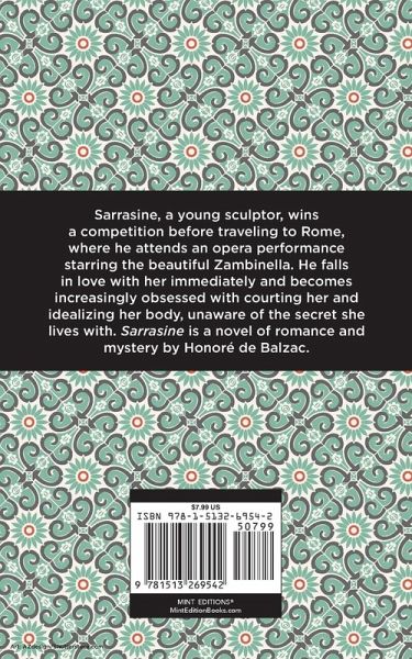 Sarrasine (1831) is a novella by French author Honoré de Balzac. Written as part of his La Comédie humaine sequence, Sarrasine is one of Balzac's earliest works published without a pseudonym and helped to establish his reputation as a serious writer and distinguished member of Parisian high society. Noted for its controversial exploration of homosexuality and castration, Balzac's novella would become the subject of Roland Barthe's groundbreaking work of literary criticism, S/Z (1970). Composed as a frame narrative, Sarrasine begins during a ball at the mansion of the wealthy Monsieur de Lanty. The unnamed narrator, from a window overlooking the garden, listens to the conversations of partygoers and watches as his guest, Beatrix Rochefide, is approached by a mysterious older man. The next night, the narrator tells Beatrix a story involving the man, a respected member of de Lanty's circle. He begins with the life of Ernest-Jean Sarrasine, a successful young sculptor who, on a trip to Rome, fell in love with an opera star named Zambinella. Convinced she represents the ideal feminine form, he rejects Zambinella's misgivings and vague excuses, becoming increasingly obsessed with the beautiful singer. Devising a plan to kidnap Zambinella during a party at the French embassy, Sarrasine discovers the truth: the singer is a castrato, a classical operatic performer who was selected and castrated before puberty. Sarrasine, a powerful novella, explores themes of idealization and obsession while illuminating the conflation of sex and gender. This edition of Honoré de Balzac's Sarrasine is a classic of French literature reimagined for modern readers. Since our inception in 2020, Mint Editions has kept sustainability and innovation at the forefront of our mission. Each and every Mint Edition title gets a fresh, professionally typeset manuscript and a dazzling new cover, all while maintaining the integrity of the original book. With thousands of titles in our collection, we aim to spotlight diverse public domain works to help them find modern audiences. Mint Editions celebrates a breadth of literary works, curated from both canonical and overlooked classics from writers around the globe.