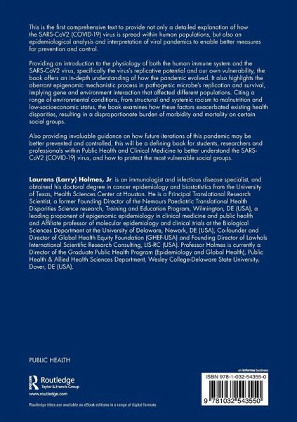 Providing an introduction to the physiology of both the human immune system and the SARS-CoV2 virus, specifically the virus's replicative potential and our own vulnerability, the book offers an in-depth understanding of how the pandemic evolved. It also highlights the aberrant epigenomic mechanistic process in pathogenic microbe's replication and survival, implying gene and environment interaction that affected different populations. Citing a range of environmental conditions, from structural and systemic racism to malnutrition and low-socioeconomic status, the book examines how these factors exacerbated existing health disparities, resulting in a disproportionate burden of morbidity and mortality on certain social groups.
