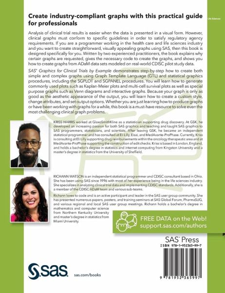 Create industry-compliant graphs with this practical guide for professionals Analysis of clinical trial results is easier when the data is presented in a visual form. However, clinical graphs must conform to specific guidelines in order to satisfy regulatory agency requirements. If you are a programmer working in the health care and life sciences industry and you want to create straightforward, visually appealing graphs using SAS, then this book is designed specifically for you. Written by two experienced practitioners, the book explains why certain graphs are requested, gives the necessary code to create the graphs, and shows you how to create graphs from ADaM data sets modeled on real-world CDISC pilot study data. SAS Graphics for Clinical Trials by Example demonstrates step-by-step how to create both simple and complex graphs using Graph Template Language (GTL) and statistical graphics procedures, including the SGPLOT and SGPANEL procedures. You will learn how to generate commonly used plots such as Kaplan-Meier plots and multi-cell survival plots as well as special purpose graphs such as Venn diagrams and interactive graphs. Because your graph is only as good as the aesthetic appearance of the output, you will learn how to create a custom style, change attributes, and set output options. Whether you are just learning how to produce graphs or have been working with graphs for a while, this book is a must-have resource to solve even the most challenging clinical graph problems.