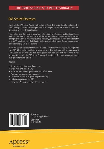 Customize the SAS Stored Process web application to create amazing tools for end users. This book shows you how to use stored processes-SAS programs stored on a server and executed as required by requesting applications.