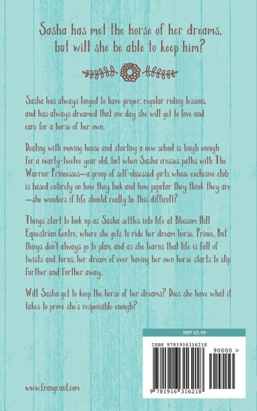 Sasha has met the horse of her dreams., but will she be able to keep him? Sasha has always longed to have proper, regular riding lessons, and has always dreamed that one day she will get to love and care for a horse of her own. Dealing with moving house and starting a new school is tough enough for a nearly-twleve-year-old, but when Sasha crosses paths with The Warrior Princesses - a group of self-obsessed girls whose exclusive club is based entirely on how they look and how popular they think they are - she wonders if life should really be this difficult? Things start to look up as Sasha settles into life at Blossom Hill Equestrian Centre, where she gets to ride her dream horse, Prince. But things don't always go to plan, and she learns that life is full of twists and turns, her dream of ever having her own horse starts to slip further and further away. Will Sasha get to keep the horse of her dreams? Does she have what it takes to prove she's responsible enough?
