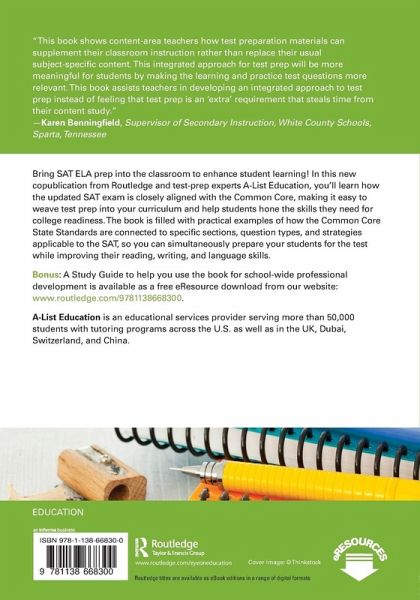 Bring SAT ELA prep into the classroom to enhance student learning! In this new copublication from Routledge and test-prep experts A-List Education, you'll learn how the updated SAT exam is closely aligned with the Common Core, making it easy to weave test prep into your curriculum and help students hone the skills they need for college readiness. The book is filled with practical examples of how the Common Core State Standards are connected to specific sections, question types, and strategies applicable to the SAT, so you can simultaneously prepare your students for the test while improving their reading, writing, and language skills.