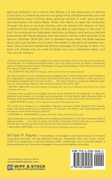 Spiritual warfare is not a church fad. Rather, it is the rediscovery of biblical Christianity. Furthermore, one will not grasp what the Bible teaches until one comprehends what it affirms about spiritual warfare. In truth, spiritual warfare permeates the entire Bible. When one learns to read the Scriptures through the lens of spiritual warfare, one will discern the mission of God, understand the kingdom of God, and be able to participate in the work of God. As a professional theologian, seminary professor, and spiritual warfare practitioner, Bill Payne believes that the church will not make disciples of all nations (Matthew 28:18-20) until it operationalizes what the Bible teaches about spiritual warfare. As it orients the reader to the spiritual warfare mandate, Satan Exposed tackles the difficult passages of Scripture. In short, this book will change how you read the Bible, how you understand reality, and how you do ministry.