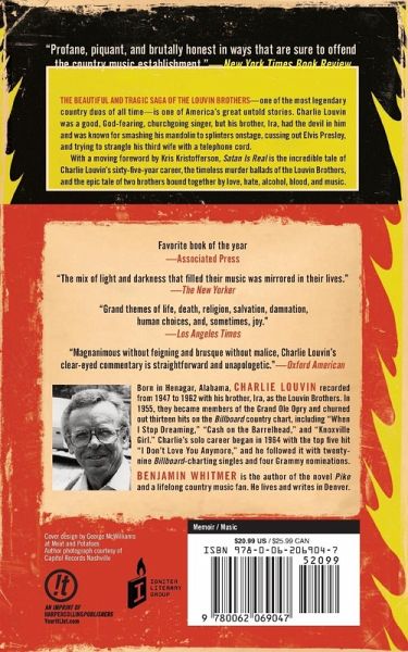 The beautiful and tragic saga of the Louvin Brothers?one of the most legendary country duos of all time?is one of America's great untold stories. Charlie Louvin was a good, God-fearing, churchgoing singer, but his brother, Ira, had the devil in him and was known for smashing his mandolin to splinters onstage, cussing out Elvis Presley, and trying to strangle his third wife with a telephone cord. With a moving foreword by Kris Kristofferson, Satan Is Real is the incredible tale of Charlie Louvin's sixty-five-year career, the timeless murder ballads of the Louvin Brothers, and the epic tale of two brothers bound together by love, hate, alcohol, blood, and music.