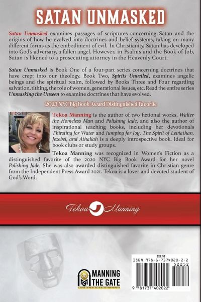 2023 NYC Big Book Award Distinguished Favorite: Satan Unmasked examines passages of scriptures concerning Satan and the origins of how he evolved into doctrines and belief systems, taking on many different forms as the embodiment of evil. In Christianity, Satan has developed into God's adversary, a fallen angel. However, in Psalms and the Book of Job, Satan is likened to a prosecuting attorney in the Heavenly Court. Satan Unmasked is Book One of a four-part series concerning doctrines that have crept into our theology. Book Two, Spirits Unveiled, examines angelic beings and the spiritual realm, followed by Books Three and Four regarding salvation, tithing, the role of women, generational issues, etc. Read the entire series Unmasking the Unseen to examine doctrines that have evolved.