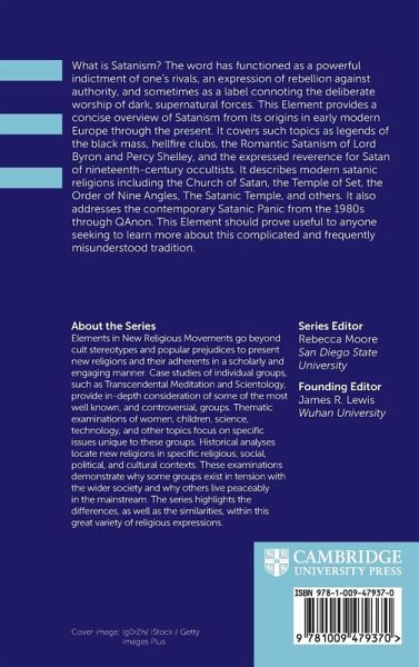 This Element provides a concise overview of Satanism from its origins in early modern Europe through the present. It covers legends of the black mass, hell-fire clubs, the Romantic Satanism, nineteenth-century occultists, and contemporary Satanic Panic from the 1980s through QAnon.