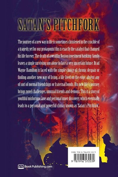 The journey of a new way in life is sometimes christened in the crucible of a tragedy, yet for our protagonist this is exactly the catalyst that changed his life forever. The death of a wealthy Boston investment banking leaves a single surviving son alone to face a very uncertain future. Brad Wayne Hamilton is faced with the simple choice of chronic despair or living another new way of living, a life lived on the edge, absent any of sort of normal friendships or fraternal bonds. His new life's journey brings novel challenges, unusual friends and demons. This is a story of youthful misfortune, love and personal inner discovery, which eventually leads to a personal and powerful climax known as 'Satan's Pitchfork'.