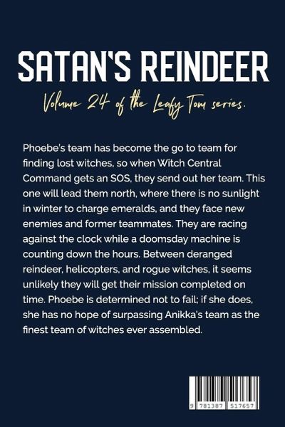Volume 24 of the Leafy Tom Series Phoebe's team has become the go to team for finding lost witches, so when Witch Central Command gets an SOS, they send out her team. This one will lead them north, where there is no sunlight in winter to charge emeralds, and they face new enemies and former teammates. They are racing against the clock while a doomsday machine is counting down the hours. Between deranged reindeer, helicopters, and rogue witches, it seems unlikely they will get their mission completed on time. Phoebe is determined not to fail; if she does, she has no hope of surpassing Anikka's team as the finest team of witches ever assembled.