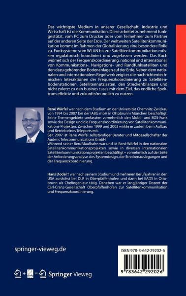 Das wichtigste Medium in unserer Gesellschaft, Industrie und Wirtschaft ist die Kommunikation. Diese arbeitet zunehmend funkgestützt, vom PC zum Drucker oder vom Teilnehmer zum Partner auf der anderen Seite der Erde. Der weltweiten Satellitenkommunikation kommt im Rahmen der Globalisierung eine besondere Rolle zu. Funksysteme vom WLAN bis zur Satellitenkommunikation müssen regulatorisch koordiniert und zugelassen werden. Das Buch widmet sich der Frequenzkoordinierung, national und international, von Kommunikations-, Navigations- und Rundfunksatelliten und den dazu gehörenden Bodenanlagen auf der Erde. Neben dem nationalen und internationalem Regelwerk zeigt es die nachrichtentechnischen Interaktionen der Frequenzkoordinierung zu Satellitenbodenstationen, Satellitennutzlasten, den Streckenbilanzen und nicht zuletzt zu den busines cases mit dem Ziel, das endliche Spektrum effektiv und zukunftsfreundlich zu nutzen.