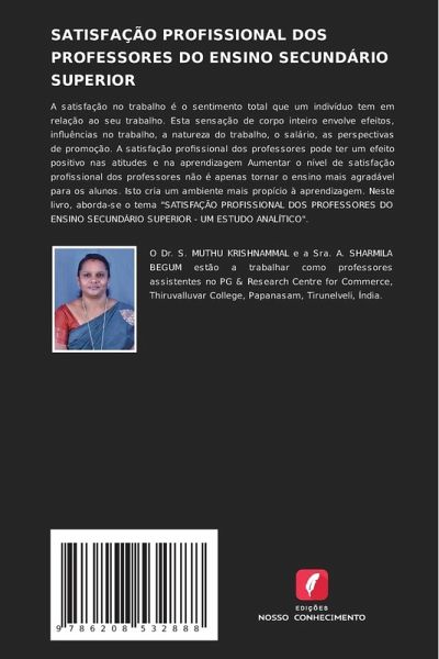 A satisfação no trabalho é o sentimento total que um indivíduo tem em relação ao seu trabalho. Esta sensação de corpo inteiro envolve efeitos, influências no trabalho, a natureza do trabalho, o salário, as perspectivas de promoção. A satisfação profissional dos professores pode ter um efeito positivo nas atitudes e na aprendizagem Aumentar o nível de satisfação profissional dos professores não é apenas tornar o ensino mais agradável para os alunos. Isto cria um ambiente mais propício à aprendizagem. Neste livro, aborda-se o tema "SATISFAÇÃO PROFISSIONAL DOS PROFESSORES DO ENSINO SECUNDÁRIO SUPERIOR - UM ESTUDO ANALÍTICO".
