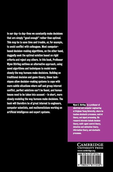 In our day-to-day lives we constantly make decisions which are simply 'good enough' rather than optimal. Most computer-based decision-making algorithms, on the other hand, doggedly seek only the optimal solution based on rigid criteria and reject any others. In this book, Professor Stirling outlines an alternative approach, using novel algorithms and techniques which can be used to find satisficing solutions. Building on traditional decision and game theory, these techniques allow decision-making systems to cope with more subtle situations where self and group interests conflict, perfect solutions can't be found and human issues need to be taken into account - in short, more closely modelling the way humans make decisions. The book will therefore be of great interest to engineers, computer scientists and mathematicians working on artificial intelligence and expert systems.