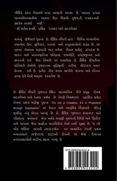 "Kaushik has given new dimensions to column writing. Such depth subjects with such an immense enlightenment had never touched Gujarati journalism." - Shri Bhaven Kachhi The title of the book translates as The Projector of Truth. It is a compilation of a well-known Indian author Dr. Kaushik Chaudhary's Gujarati articles, thoughts, statements, and short stories. The book contains the articles and statements of the author during in first four years as an author from the age of 27 to 31. The intriguing articles include history, politics, society, life, and Indian religion. Dr. Kaushik Chaudhary's revolutionary articles have created a noticeable effect on the intellectual class of Gujarat in the last decade. Every article is a valuable document that inspires you to think deeply and gives you clarity with a spiritual effect.