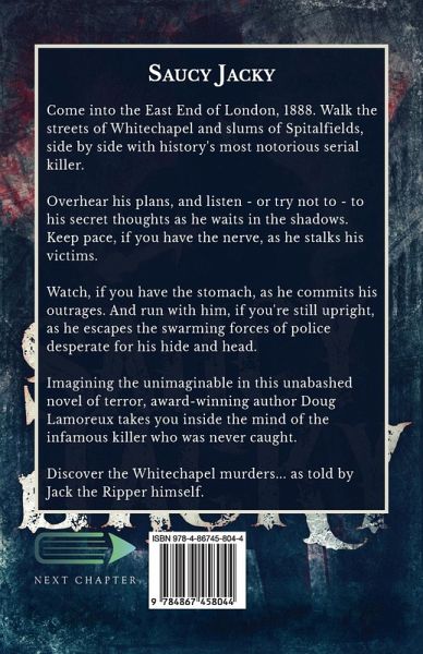 Come into the East End of London, 1888. Walk the streets of Whitechapel and slums of Spitalfields, side by side with history's most notorious serial killer. Overhear his plans, and listen - or try not to - to his secret thoughts as he waits in the shadows. Keep pace, if you have the nerve, as he stalks his victims. Watch, if you have the stomach, as he commits his outrages. And run with him, if you're still upright, as he escapes the swarming forces of police desperate for his hide and head. Imagining the unimaginable in this unabashed novel of terror, award-winning author Doug Lamoreux takes you inside the mind of the infamous killer who was never caught. Discover the Whitechapel murders... as told by Jack the Ripper himself.