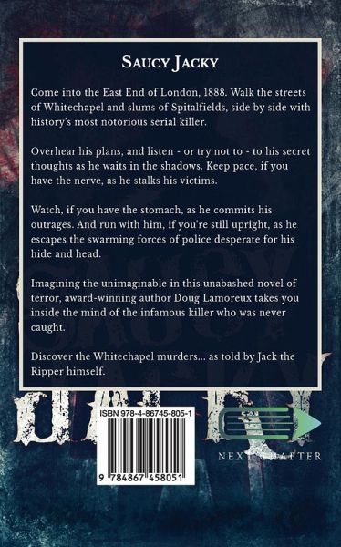 Come into the East End of London, 1888. Walk the streets of Whitechapel and slums of Spitalfields, side by side with history's most notorious serial killer. Overhear his plans, and listen - or try not to - to his secret thoughts as he waits in the shadows. Keep pace, if you have the nerve, as he stalks his victims. Watch, if you have the stomach, as he commits his outrages. And run with him, if you're still upright, as he escapes the swarming forces of police desperate for his hide and head. Imagining the unimaginable in this unabashed novel of terror, award-winning author Doug Lamoreux takes you inside the mind of the infamous killer who was never caught. Discover the Whitechapel murders... as told by Jack the Ripper himself.