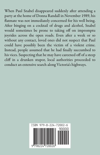 When Paul Snabel disappeared suddenly after attending a party at the home of Donna Randall in November 1989, his flatmate was not immediately concerned for his well being. After binging on a cocktail of drugs and alcohol, Snabel would sometimes be prone to taking off on impromptu joyrides across the open roads. Even after a week or so without any contact, loved ones did not suspect that Paul could have possibly been the victim of a violent crime. Instead, people assumed that he had finally succumbed to his vices. Suspecting that he may have careened off of a steep cliff in a drunken stupor, local authorities proceeded to conduct an extensive search along Victoria's highways.