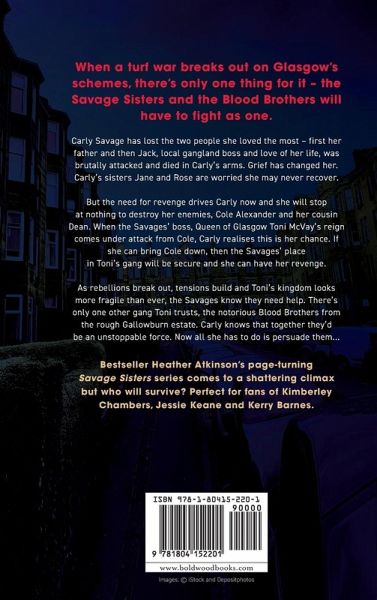 The latest gritty, action-packed gangland thriller from bestseller Heather Atkinson. Perfect for all fans of Kimberley Chambers and Jessie Keane. When a turf war breaks out on Glasgow's schemes, there's only one thing for it - the Savage Sisters and the Blood Brothers will have to fight as one. Carly Savage has lost the two people she loved the most - first her father and then Jack, local gangland boss and love of her life, was brutally attacked and died in Carly's arms. Grief has changed her. Carly's sisters Jane and Rose are worried she may never recover. But the need for revenge drives Carly now and she will stop at nothing to destroy her enemies, Cole Alexander and her cousin Dean. When the Savages' boss, Queen of Glasgow Toni McVay's reign comes under attack from Cole, Carly realises this is her chance. If she can bring Cole down, then the Savages' place in Toni's gang will be secure and she can have her revenge. As rebellions break out, tensions build and Toni's kingdom looks more fragile than ever, the Savages know they need help. There's only one other gang Toni trusts, the notorious Blood Brothers from the rough Gallowburn estate. Carly knows that together they'd be an unstoppable force. Now all she has to do is persuade them... Bestseller Heather Atkinson's page-turning Savage Sisters series comes to a shattering climax but who will survive? Perfect for fans of Kimberley Chambers, Jessie Keane and Kerry Barnes. 'Heather is a bright star in the world of gangland writing...Read it, you won't be disappointed.' Jacqui Rose Readers love Heather Atkinson: 'I had to take a breath before I wrote this. This story has took me on such an emotional rollercoaster. Just when you think you have the plot figured out BAM another shocking twist hits you in the face. Violence heartbreak and love. You've done it again Heather Atkinson. You brilliant genius.'⭐⭐⭐⭐⭐ 'Oh my once again I've been blown away by the fantastic writing of Heather Atkinson. I couldn't guess how the book was going to end. This book had everything, murders, deceit, love, I even had a tear at one point. I'm only sorry that I've finished it tbh. Definitely recommend this book to anyone who enjoys an exciting read.'⭐⭐⭐⭐⭐ 'WOW! Heather Atkinson. Yet another incredible series.** What a brilliant autho**r. The story lines throughout are compelling, great twists & turns.'⭐⭐⭐⭐⭐ 'Wow I couldn't put this book down, and what a twist at the end. I've read the full series and look forward to reading more of Heather Atkinson books, such a brilliant author.'⭐⭐⭐⭐⭐ 'Gripped me from the start. One of the best series I read in a long time, kept you page turning, my poor eyes are so heavy as I couldn't put the book down.'⭐⭐⭐⭐⭐
