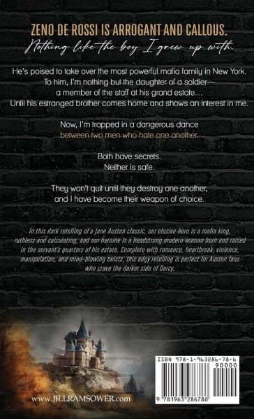Zeno De Rossi is arrogant and callous. Nothing like the boy I grew up with. He's poised to take over the most powerful mafia family in New York. To him, I'm nothing but the daughter of a soldier-a member of the staff at his grand estate... Until his estranged brother comes home and shows an interest in me. Now, I'm trapped in a dangerous dance between two men who hate one another. Both have secrets. Neither is safe. They won't quit until they destroy one another, and I have become their weapon of choice. In this dark retelling of a Jane Austen classic, our elusive hero is a mafia king, ruthless and calculating; and our heroine is a headstrong modern woman born and raised in the servant's quarters of his estate. Complete with romance, heartbreak, violence, manipulation, and mind-blowing twists, this edgy retelling is perfect for Austen fans who crave the darker side of Darcy.