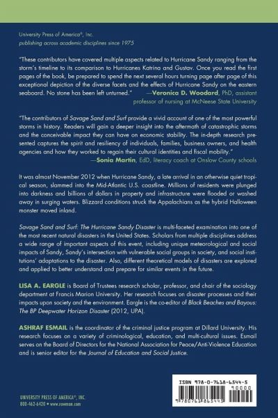 Lisa A. Eargle is Board of Trustees research scholar, professor, and chair of the sociology department at Francis Marion University. Her research focuses on disaster processes and their impacts upon society and the environment. Eargle is the co-editor of Black Beaches and Bayous: The BP Deepwater Horizon Disaster (2012, UPA). Ashraf Esmail is the coordinator of the criminal justice program at Dillard University. His research focuses on a variety of criminological, education, and multi-cultural issues. Esmail serves on the Board of Directors for the National Association for Peace/Anti-Violence Education and is senior editor for the Journal of Education and Social Justice.