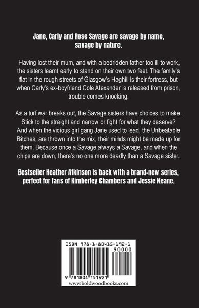 Jane, Carly and Rose Savage are savage by name, savage by nature. Having lost their mum too young, and with a bedridden father too ill to work, the sisters learnt early to stand on their own two feet. The family's flat in the rough streets of Glasgow's Haghill is their fortress, but when Carly's ex-boyfriend Cole Alexander is released from prison, trouble soon comes knocking at their door. The Alexanders have beef with the Savages, so the girls call for back up in the shape of their uncle Eddie and his two gorgeous but dangerous sons, Harry and Dean. As a turf war breaks out, the Savage sisters have choices to make. Stick to the straight and narrow or fight for what they deserve? And when the vicious girl gang Jane used to lead, the Unbeatable Bitches, are thrown into the mix, their minds might be made up for them. Because once a Savage always a Savage, and when the chips are down, there's no one more deadly than a Savage sister. Bestseller Heather Atkinson is back with a brand-new series, perfect for fans of Kimberley Chambers and Jessie Keane. What readers are saying about Heather Atkinson: 'I have ran out of good things to say about this writer. Just read all her books and thank me later. Thank you Heather Atkinson!' 'Another brilliant book form the amazing Heather Atkinson. Never fails to keep us gripped from first word to the last.' 'I just didn't want to put Wicked Girls down and devoured every delicious turn of the page. What a fabulous book. Praise to Heather Atkinson and a well-earned 5***** and more.' 'I could not stop reading. Every time I finished a chapter, I just had to keep going. I laughed, was sometimes shocked and I cried. I just loved it. 5 stars.' 'Atkinson writes addictive storylines with twists and excitement, creating a world the reader becomes completely absorbed into. The tense atmosphere is surreal, which is one of my favourite things about this author. You could never say these stories are predictable! As one of my preferred genres, this is up with the best! Highly recommended for fans of this genre/author.'