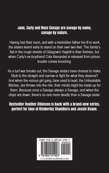 Jane, Carly and Rose Savage are savage by name, savage by nature. Having lost their mum too young, and with a bedridden father too ill to work, the sisters learnt early to stand on their own two feet. The family's flat in the rough streets of Glasgow's Haghill is their fortress, but when Carly's ex-boyfriend Cole Alexander is released from prison, trouble soon comes knocking at their door. The Alexanders have beef with the Savages, so the girls call for back up in the shape of their uncle Eddie and his two gorgeous but dangerous sons, Harry and Dean. As a turf war breaks out, the Savage sisters have choices to make. Stick to the straight and narrow or fight for what they deserve? And when the vicious girl gang Jane used to lead, the Unbeatable Bitches, are thrown into the mix, their minds might be made up for them. Because once a Savage always a Savage, and when the chips are down, there's no one more deadly than a Savage sister. Bestseller Heather Atkinson is back with a brand-new series, perfect for fans of Kimberley Chambers and Jessie Keane. What readers are saying about Heather Atkinson: 'I have ran out of good things to say about this writer. Just read all her books and thank me later. Thank you Heather Atkinson!' 'Another brilliant book form the amazing Heather Atkinson. Never fails to keep us gripped from first word to the last.' 'I just didn't want to put Wicked Girls down and devoured every delicious turn of the page. What a fabulous book. Praise to Heather Atkinson and a well-earned 5***** and more.' 'I could not stop reading. Every time I finished a chapter, I just had to keep going. I laughed, was sometimes shocked and I cried. I just loved it. 5 stars.' 'Atkinson writes addictive storylines with twists and excitement, creating a world the reader becomes completely absorbed into. The tense atmosphere is surreal, which is one of my favourite things about this author. You could never say these stories are predictable! As one of my preferred genres, this is up with the best! Highly recommended for fans of this genre/author.'