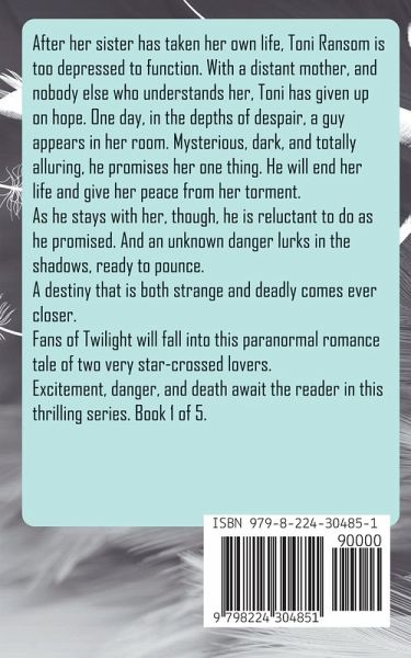 After her sister has taken her own life, Toni Ransom is too depressed to function. With a distant mother, and nobody else who understands her, Toni has given up on hope. One day, in the depths of despair, a guy appears in her room. Mysterious, dark, and totally alluring, he promises her one thing. He will end her life and give her peace from her torment. As he stays with her, though, he is reluctant to do as he promised. And an unknown danger lurks in the shadows, ready to pounce. A destiny that is both strange and deadly comes ever closer. Fans of Twilight will fall into this paranormal romance tale of two very star-crossed lovers. Excitement, danger, and death await the reader in this thrilling series. Book 1 of 5.