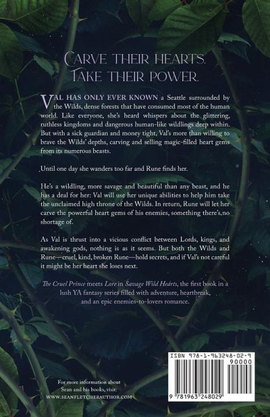 When a human girl is caught up in a conflict between wildlings, Lords, and powerful magic, she'll have to trust her most dangerous enemy to make it out alive. Carve their hearts. Take their power. Val has only ever known a Seattle surrounded by the Wilds, dense forests that have consumed most of the human world. Like everyone, she's heard whispers about the glittering, ruthless kingdoms and dangerous human-like wildlings deep within. But with a sick guardian and money tight, Val's more than willing to brave the Wilds' depths, carving and selling magic-filled heart gems from its numerous beasts. Until one day she wanders too far and Rune finds her. He's a wildling, more savage and beautiful than any beast, and he has a deal for her: Val will use her unique abilities to help him take the unclaimed high throne of the Wilds. In return, Rune will let her carve the powerful heart gems of his enemies, something there's no shortage of. As Val is thrust into a vicious conflict between Lords, kings, and awakening gods, nothing is as it seems. But both the Wilds and Rune-cruel, kind, broken Rune-hold secrets, and if Val's not careful it might be her heart she loses next. The Cruel Prince meets Lore in Savage Wild Hearts, the first book in a lush YA fantasy series filled with adventure, heartbreak, and an epic enemies-to-lovers romance.