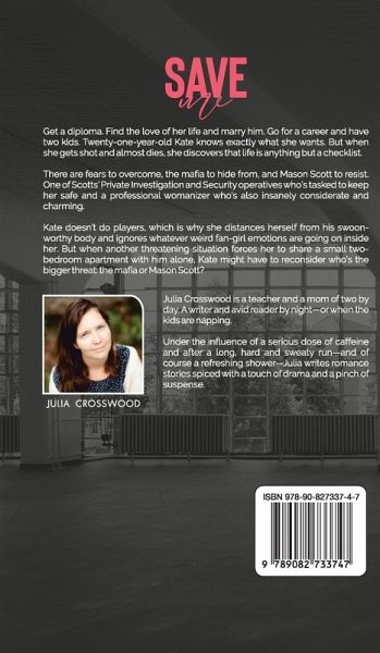 Get a diploma. Find the love of her life and marry him. Go for a career and have kids. Twenty-one-year-old Kate knows exactly what she wants, but when she gets shot and almost dies, she discovers that life isn't a checklist. It's hard, unpredictable, and dangerous. ¿There are fears to overcome, the mafia to hide from, and Mason Scott to resist. One of Scotts' Private Investigation and Security operatives who keeps her safe and is a professional womanizer who's insanely considerate and charming. Kate doesn't do players, which is why she distances herself from his swoon-worthy body and ignores whatever weird fan-girl emotions are going on inside her. But when another threatening situation forces her to share a small two-bedroom apartment with him alone, Kate might have to reconsider who's the bigger threat: the mafia or Mason Scott?