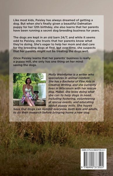 Like most kids, Paisley has always dreamed of getting a dog. But when she's finally given a beautiful Dalmatian puppy for her 12th birthday, she also learns that her parents have been running a secret dog breeding business for years. The dogs are kept in an old barn 24/7, and while it seems odd to Paisley, she trusts that her parents know what they're doing. She's eager to help her mom and dad care for the breeding dogs at first, but over time, she suspects that her parents might not be treating the dogs well. Once Paisley learns that her parents' business is really a puppy mill, she only has one thing on her mind: saving the dogs.