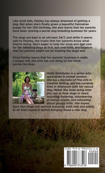 Like most kids, Paisley has always dreamed of getting a dog. But when she's finally given a beautiful Dalmatian puppy for her 12th birthday, she also learns that her parents have been running a secret dog breeding business for years. The dogs are kept in an old barn 24/7, and while it seems odd to Paisley, she trusts that her parents know what they're doing. She's eager to help her mom and dad care for the breeding dogs at first, but over time, she suspects that her parents might not be treating the dogs well. Once Paisley learns that her parents' business is really a puppy mill, she only has one thing on her mind: saving the dogs.…mehr
