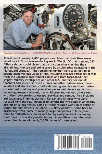 At last count, nearly 2,400 people can claim that their lives were saved by a U.S. submarine during World War II. Of that number, 523 Allied aviators could claim that distinction after crashing their aircraft into the sea and being saved by a submarine operating in the "Lifeguard League." The remaining number were a collection of other military and civilian personnel, each with a story to tell and now able to tell their grand-children. Some of those rescued went on to retire as senior military officers including U.S. Navy Admirals, some back to missionary work, some to manage large companies in later years, some to philanthropic endeavors to pay everyone back for saving their lives. Appendix A is an intensely-researched index of nearly 2,200 names of those saved.