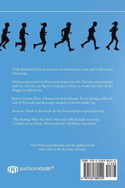 Verna Buchanan looks at a person, environment or scene and is able to put it in words. She has a conversation with you and can pen your life. You have a conversation with her and she can flip her God given talents to words and write all the things you did not say. Born in Cotton Plant, Arkansas raised in Chicago, IL her writings reflex the soul of the south and skyscraper shadows of the the windy city. From the North to the South she has lived and thus expresses herself. "The Beatings Were No More" will send chills through your soul. "A Father in my Heart, Mind and Soul" will flutter your heart.
