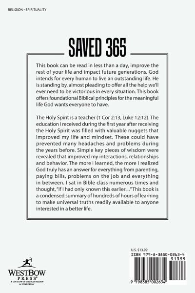 This book can be read in less than a day, improve the rest of your life and impact future generations. God intends for every human to live an outstanding life. He is standing by, almost pleading to offer all the help we'll ever need to be victorious in every situation. This book offers foundational Biblical principles for the meaningful life God wants everyone to have. The Holy Spirit is a teacher (1 Cor 2:13, Luke 12:12). The education I received during the first year after receiving the Holy Spirit was filled with valuable nuggets that improved my life and mindset. These could have prevented many headaches and problems during the years before. Simple key pieces of wisdom were revealed that improved my interactions, relationships and behavior. The more I learned, the more I realized God truly has an answer for everything from parenting, paying bills, problems on the job and everything in between. I sat in Bible class numerous times and thought, "If I had only known this earlier..." This book is a condensed summary of hundreds of hours of learning to make universal truths readily available to anyone interested in a better life.