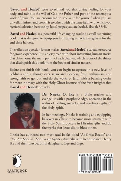 'Saved and Healed' seeks to remind you that divine healing for your body and mind is the will of God the Father and part of the redemptive work of Jesus. You are encouraged to receive it for yourself when you are unwell, minister and preach it to others with the same faith with which you received salvation because by Jesus' stripes you are healed. (Isaiah 53:5). 'Saved and healed' is a powerful life-changing reading as well as training book that is designed to equip you for healing miracle evangelism for the end time harvest. The reflection question format makes 'Saved and Healed' a valuable resource for group experience. It is an easy read with short interesting human stories that drive home the main points of each chapter, which is one of the things that distinguish this book from the books of similar nature. Before you finish this book, you can begin to operate in a new level of boldness and authority over satan and sickness; fresh enthusiasm and strong faith to get out and do the works of Jesus with a burning desire for more intimacy with the Holy Ghost because of the fresh insights that 'Saved and Healed' provides.