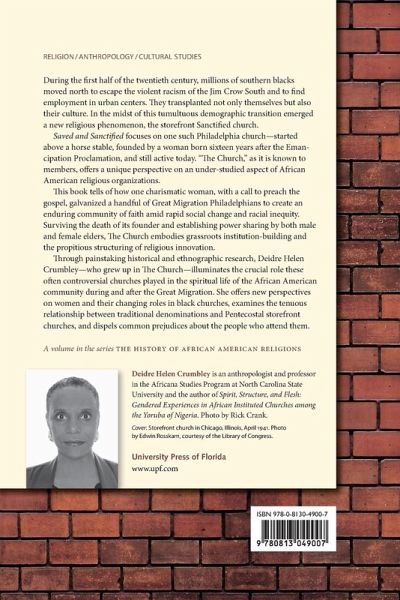 During the early twentieth century, millions of southern blacks moved north to escape the violent racism of the Jim Crow South and to find employment in urban centres. They transplanted not only themselves but also their culture; in the midst of this tumultuous demographic transition emerged a new social institution, the storefront sanctified church. Saved and Sanctified focuses on one such Philadelphia church that was started above a horse stable, was founded by a woman born sixteen years after the Emancipation Proclamation, and is still active today. ""The Church,"" as it is known to its members, offers a unique perspective on an under-studied aspect of African American religious institutions. Through painstaking historical and ethnographic research, Deidre Helen Crumbley illuminates the crucial role these oftentimes controversial churches played in the spiritual life of the African American community during and after the Great Migration. She provides a new perspective on women and their leadership roles, examines the loose or nonexistent relationship these Pentecostal churches have with existing denominations, and dispels common prejudices about those who attend storefront churches. Skillfully interweaving personal vignettes from her own experience as a member, along with life stories of founding members, Crumbley provides new insights into the importance of grassroots religion and community-based houses of worship.