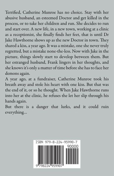 Terrified, Catherine Munroe has no choice. Stay with her abusive husband, an esteemed Doctor and get killed in the process, or to take her children and run. She decides to run and start over. A new life, in a new town, working at a clinic as a receptionist, she finally finds her feet, that is until Dr Jake Hawthorne shows up as the new Doctor in town. They shared a kiss, a year ago. It was a mistake, one she never truly regretted, but a mistake none-the-less. Now with Jake in the picture, things slowly start to develop between them. But her estranged husband, Frank lingers in her thoughts, and she knows it's only a matter of time before she has to face her demons again. A year ago, at a fundraiser, Catherine Munroe took his breath away and stole his heart with one kiss. But that was the end of it, or so he thought. When Jake Hawthorne runs into her at the clinic, he refuses the let her slip through his hands again. But there is a danger that lurks, and it could ruin everything...