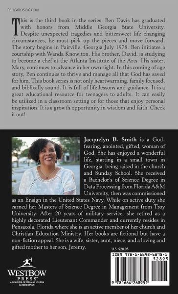 This is the third book in the series. Ben Davis has graduated with honors from Middle Georgia State University. Despite unexpected tragedies and bittersweet life changing circumstances, he must pick up the pieces and move forward. The story begins in Fairville, Georgia July 1978. Ben initiates a courtship with Wanda Knowlton. His brother, David, is studying to become a chef at the Atlanta Institute of the Arts. His sister, Mary, continues to advance in her own right. In this coming of age story, Ben continues to thrive and manage all that God has saved for him. This book series is not only heartwarming, family focused, and biblically sound. It is full of life lessons and guidance. It is a great educational resource for teenagers to adults. It can easily be utilized in a classroom setting or for those that enjoy personal inspiration. It is a growth opportunity in wisdom and faith. Check it out!