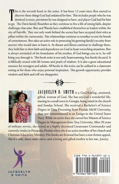 This is the seventh book in the series. It has been 12 years since Ben started to discover those things God had ordained for him. This includes people who he was destined to meet, provisions he was designed to have, and places God had for him to go. The Davis family flourishes as they continue to live a life of strong faith, despite challenges that arise. Ben and Wanda have established themselves as leaders within the city of Fairville. They not only work behind the scenes but have accepted their roles as pillars within the community. Past relationships continue to resurface to test the bonds of commitment. Ben takes an active role in protecting his growing family's security from anyone who would dare to harm it. As disease and illness continue to challenge them, they hold fast to their faith and dependence on God in heart wrenching situations. Ben is always reminded of the foundation of his mother, if God brings you to it, he will bring you through it. This book series is not only heartwarming, but family focused. It is biblically sound with life lessons and pearls of wisdom. It is also a great educational resource for teenagers and adults. All books in this series can be utilized in a classroom setting or for those who enjoy personal inspiration. This growth opportunity provides wisdom and faith and will not disappoint.