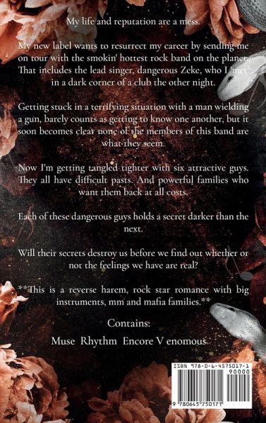 My life and reputation are a mess. My new label wants to resurrect my career by sending me on tour with the smokin' hottest rock band on the planet. That includes the lead singer, dangerous Zeke, who I 'met' in a dark corner of a club the other night. Getting stuck in a terrifying situation with a man wielding a gun, barely counts as getting to know one another, but it soon becomes clear none of the members of this band are what they seem. Now I'm getting tangled tighter with six attractive guys. They all have difficult pasts. And powerful families who want them back at all costs. Each of these dangerous guys holds a secret darker than the next. Will their secrets destroy us before we find out whether or not the feelings we have are real? **This is a reverse harem, rock star romance with big instruments, mm and mafia families.** This collection contains: Muse Rhythm Encore Venomous