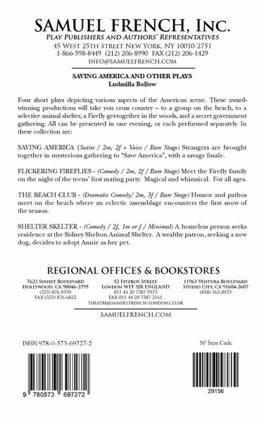 In the Rest Room at Rosenblooms author Ludmilla Bollow presents four short plays depicting various aspects of the American scene. These award winning productions will take you cross country - to a group on the beach, to a selective animal shelter, a firefly get-together in the woods, and a secret government gathering. All can be presented in one evening, or each performed separately. Contains: Saving America Flickering Fireflies Shelter Skelter The Beach Club