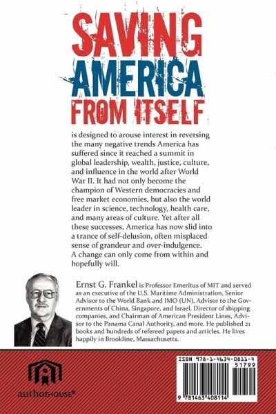 Saving America from Itself is designed to arouse interest in reversing the many negative trends America has suffered since it reached a summit in global leadership, wealth, justice, culture, and influence in the world after World War II. It had not only become the champion of Western democracies and free market economies, but also the world leader in science, technology, health care, and many areas of culture. Yet after all these successes, America has now slid into a trance of self-delusion, often misplaced sense of grandeur and over-indulgence. A change can only come from within and hopefully will.