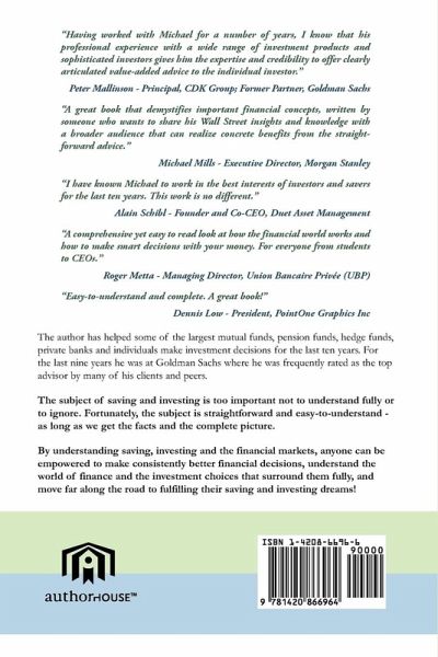 We all need to save and invest intelligently - in today's world this stuff is too important to ignore. Relying on someone else to make all the decisions can also lead to disaster. If we never get the full picture, we are relying on snippets that are often opinions, or even worse - biased opinions, when in reality the facts are what should matter most. Fortunately saving, investing and our financial system are very straightforward if we get the full picture once. After that everything makes sense! Saving and Investing brings the world of investing to an easy-to-read and understand level. The book covers compounding, how companies make money, financial markets, debt, equity, bonds, stocks, mutual funds and unit trusts, hedge funds, real estate, commodities, other investments, the economy and all of the related terminology, the impact of time, dollar cost averaging, taxes and compounding, diversification and transaction cost as well as getting started. If you are not intimately familiar with these concepts that can be amazingly straightforward when properly explained - then you should read this book! The book is different because it highlights facts and principles that will withstand the test of time and because of all of this comes from a professional practioner in the field. After reading this book, the simplicity will seem astounding, and the path towards financial independence and freedom so much clearer.