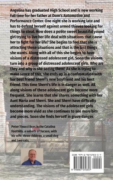 Angelina has graduated from High School and is now working full time for her father at Dom's Automotive and Performance Center. One night she is working late and has to defend herself against armed thieves looking for things to steal. How does a polite sweet beautiful young girl trying to live her life deal with situations that require her to fight for her life? She begins to feel as if she is attracting these situations and that is the last thing she wants. Along with all of this she begins to have visions of a distressed adolescent girl. Soon the visions turn into a group of distressed adolescent girls. Who are they and why is she having visions of these girls? While she is trying to make sense of this, she ends up in a serious confrontation with her best friend Sherri's new boyfriend and his best friend. Now Sherri's life is in danger as well. As the visions of these adolescent girls become more frequent, she learns that she shares something with her Aunt Maria and Sherri that she and Sherri have difficulty understanding. The visions of the adolescent girls become more vivid as she continues to see more bits and pieces. Soon she finds herself in grave danger.