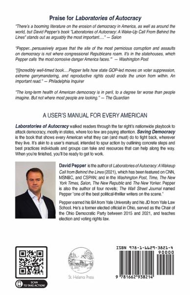 Laboratories of Autocracy walked through the hidden breadth, depth, and intensity of the countrywide attack on democracy. The final chapters outlined thirty steps necessary to fight back. One of the most common responses from readers was-"I skipped to the end. I wanted to get to the solutions." Saving Democracy is the companion book that skips to the end: -It details how we all can and must play a role in saving democracy at this fraught time. -It explains how all levels of the pro-democracy side, from national political leaders to grassroots activists to everyday Americans, must switch to offense. -It explains how to stay on offense and win on offense. Immediately, and everywhere. But it doesn't do this at 30,000 feet. It's a user's manual, intended to spur action. Your action. After a quick review of the true battle for democracy we are engaged in, each chapter explains how YOU, the reader, can and must play the leading role in lifting democracy. It details the concrete steps individuals and groups can take where you live, lists resources that can help along the way, and offers case studies and best practices that have worked elsewhere. Saving Democracy is structured to challenge and guide each reader-no matter your role in your community or politics or where you work-on how you each can play a more active and effective role in lifting democracy than you might have imagined. Over the course of the book, you will construct your own personal plan to fight for democracy. And when you're finished, you'll be ready to get to work.